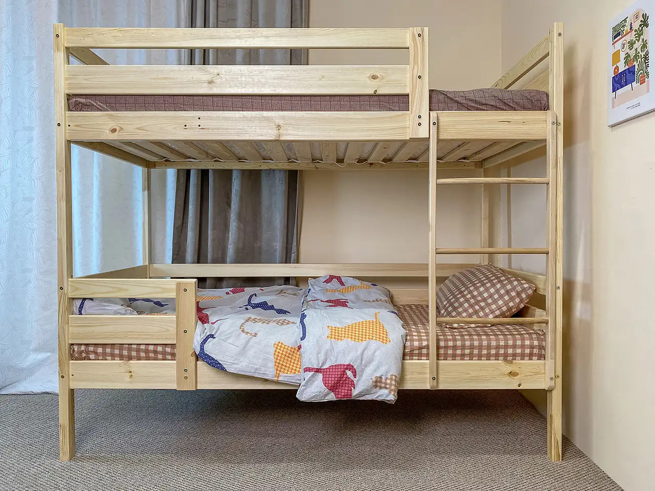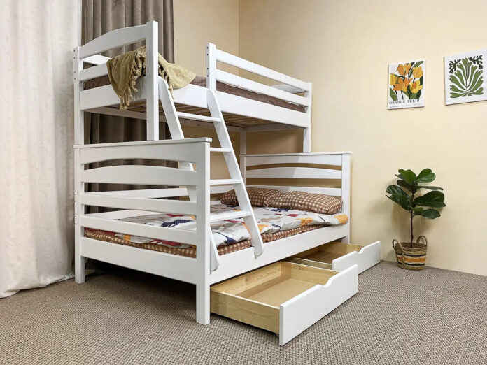 Двухярусные кровати эффективно используют высоту комнаты, оставляя больше пространства для игр, учебы или хранения вещей.